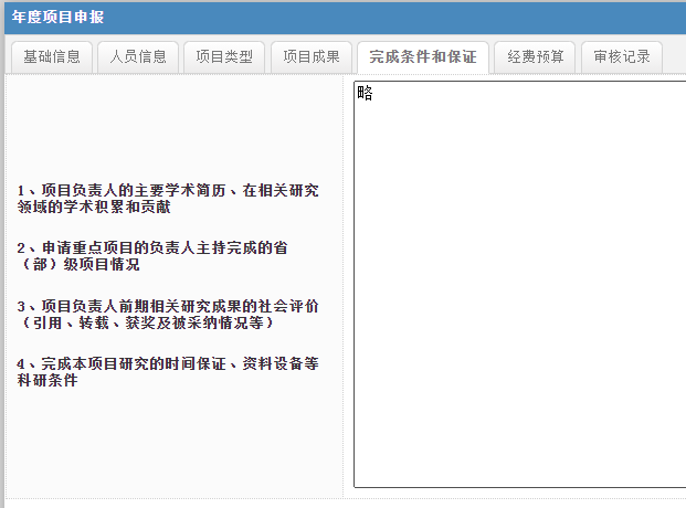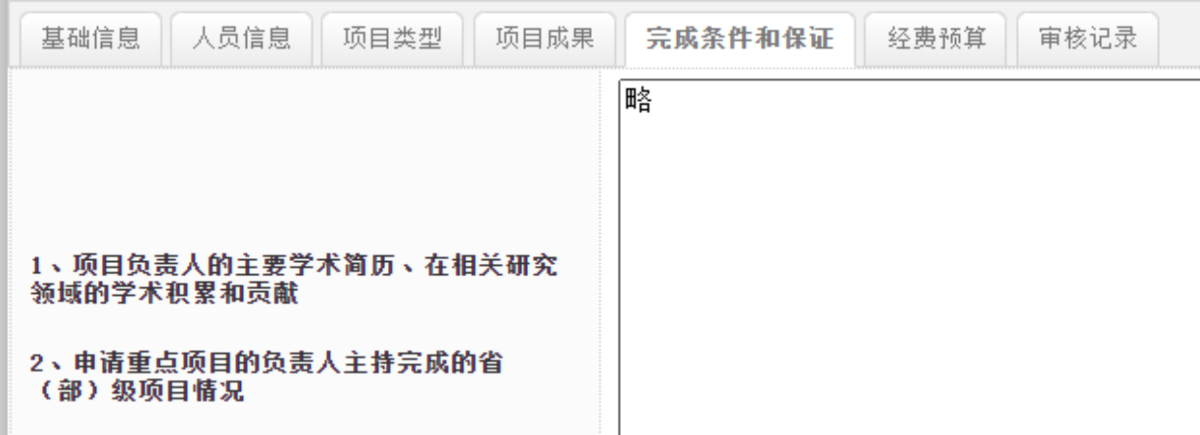 7.在完成条件和保证选项卡中,填写“略”。