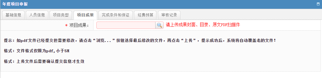 6.在项目成果选项卡中,上传成果PDF扫描件。