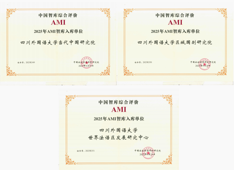 此次三大智库同步入选AMI智库,是对我校智库建设成果的权威认可,更是学校学科建设与科研实力提升的重要体现。下一步,学校将以此次入选为契机,继续锚定中国特色新型智库建设方向,紧扣国家对外开放、区域协调发展等战略需求与重庆地方发展实际,充分发挥外语学科优势与跨学科研究特色,进一步加强智库人才队伍建设、完善智库运行机制、提升咨政研究质量,推动智库成果向实践应用转化,为国家社会经济发展与地方对外开放贡献更多“川外智慧”与“川外力量”。