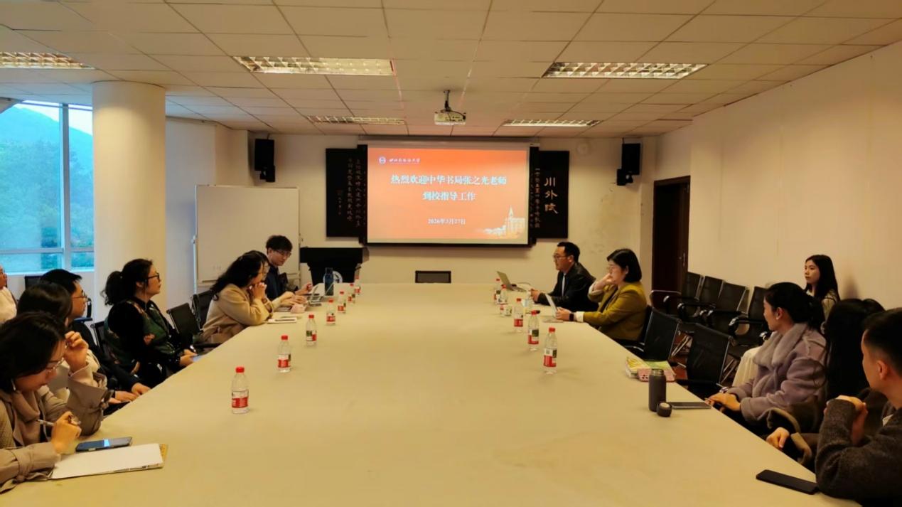 为助力教师精准把握2026年度中华学术外译项目申报要求,提升申报质量与成功率,3月27日15时,我校于博文楼三楼会议室举办国家社科基金中华学术外译项目申报专题指导会,特邀中华书局学术外译资深编辑张之光担任主讲,科研处处长林移刚主持会议,全校有意向申报该项目的教师20余人参会。