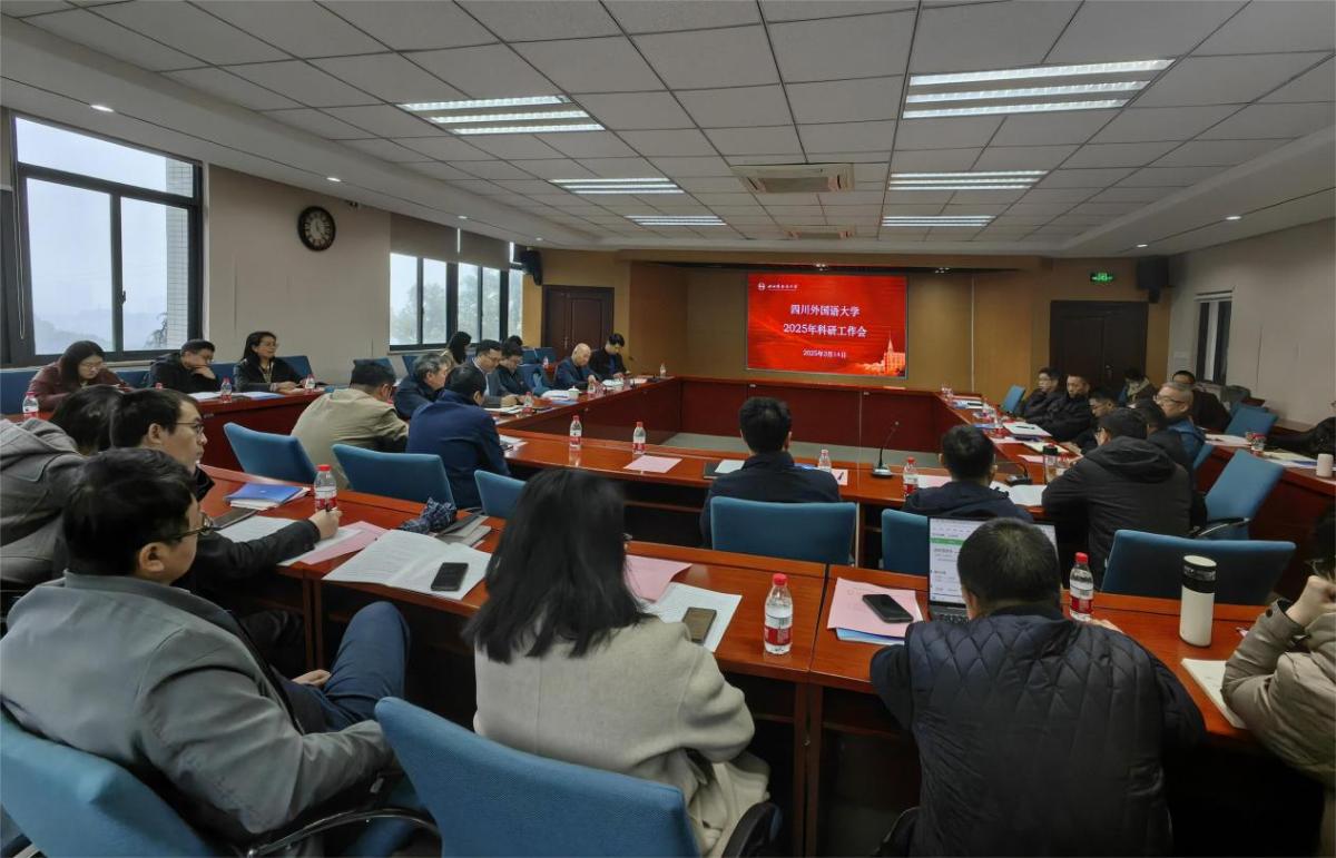 会上,首先由商务英语学院院长胡文飞、中国语言文化学院副院长黄劲伟、新闻传播学院院长刘国强、外国语文研究中心主任苏杭分别围绕本单位2024年科研情况和2025年科研工作思路进行了交流发言。