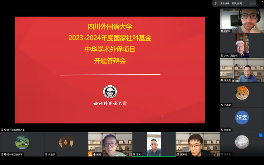 此次开题报告会以线上会议的形式举行。报告会由科研处副处长马武林教授主持。开题委员会成员由青岛大学綦甲福教授、四川大学黎海超教授和德国学术交流中心(DAAD) 外派讲师Daniel Jach博士组成。项目组成员德语学院张赟副教授、李大雪教授、刘海婷副教授、原著作者黄剑华研究员以及三星堆博物馆吴维羲副研究员参加了开题会。