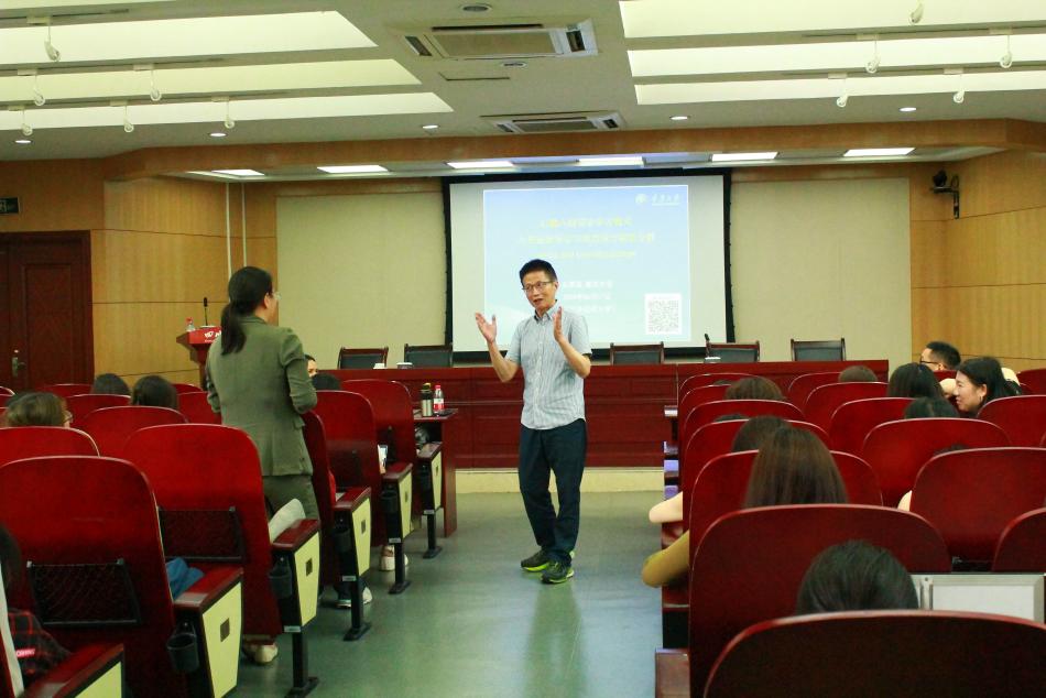 在讲座尾声,余教授与在场师生积极互动,就“AI-ILL模式下教师角色的转变”“传统考试评价机制的改革”等问题进行了热烈讨论。余教授指出,AI-ILL模式下,老师要突破的是从任务发布者到学习设计者的身份转变,而教育是一个缩短学习成本的过程,其中离不开老师对学生的引领。他强调,以学生为中心并不是去教师化,而是以学生为主体,教师为引领,促进学生语言技能的综合发展。